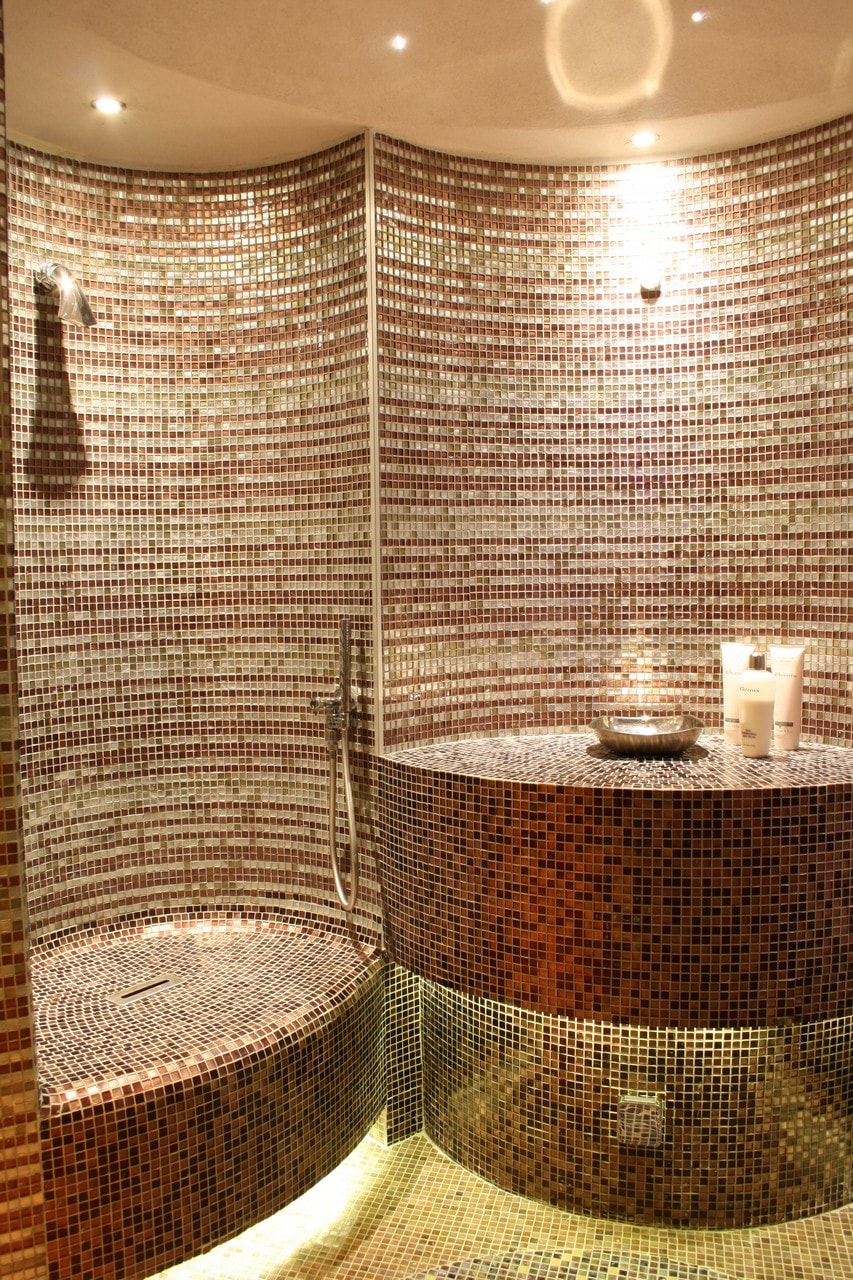 Ethos Suite Spa by Gruppo Geromin. ΠΕΡΙΓΡΑΦΗ: Σάουνα + χαμάμ με ενσωματωμένο ντους + χώρο ντους. Πόρτες και σταθερά πλαϊνά από διαφανές γυαλί …